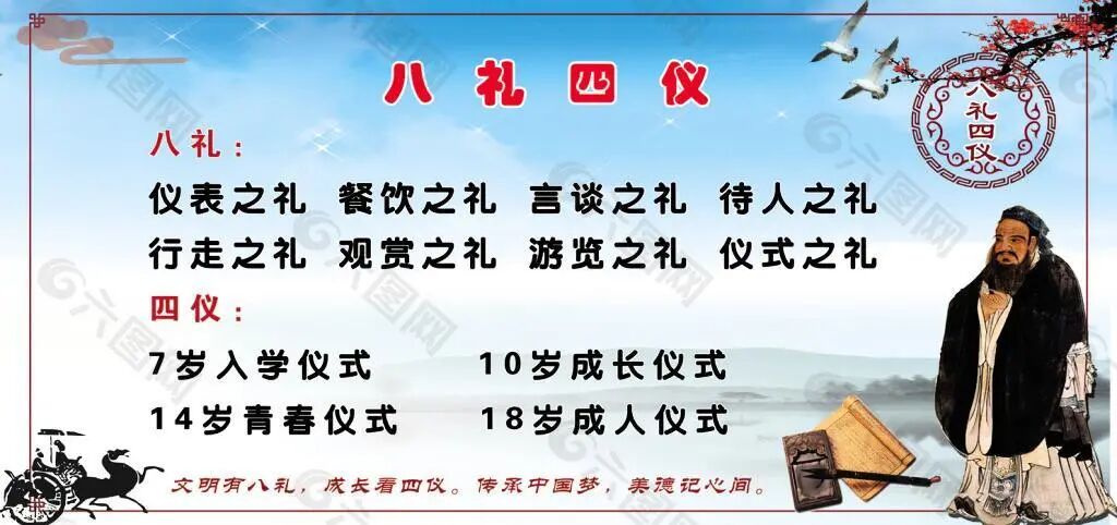 “四仪”指7岁时的入学仪式,10岁的成长仪式、14岁的青春仪式、18岁的成人仪式。我们上一年级时举行过“入学仪式”。我们走过启智门,给老师行拜师礼,校长和老师们为我们朱砂启智。